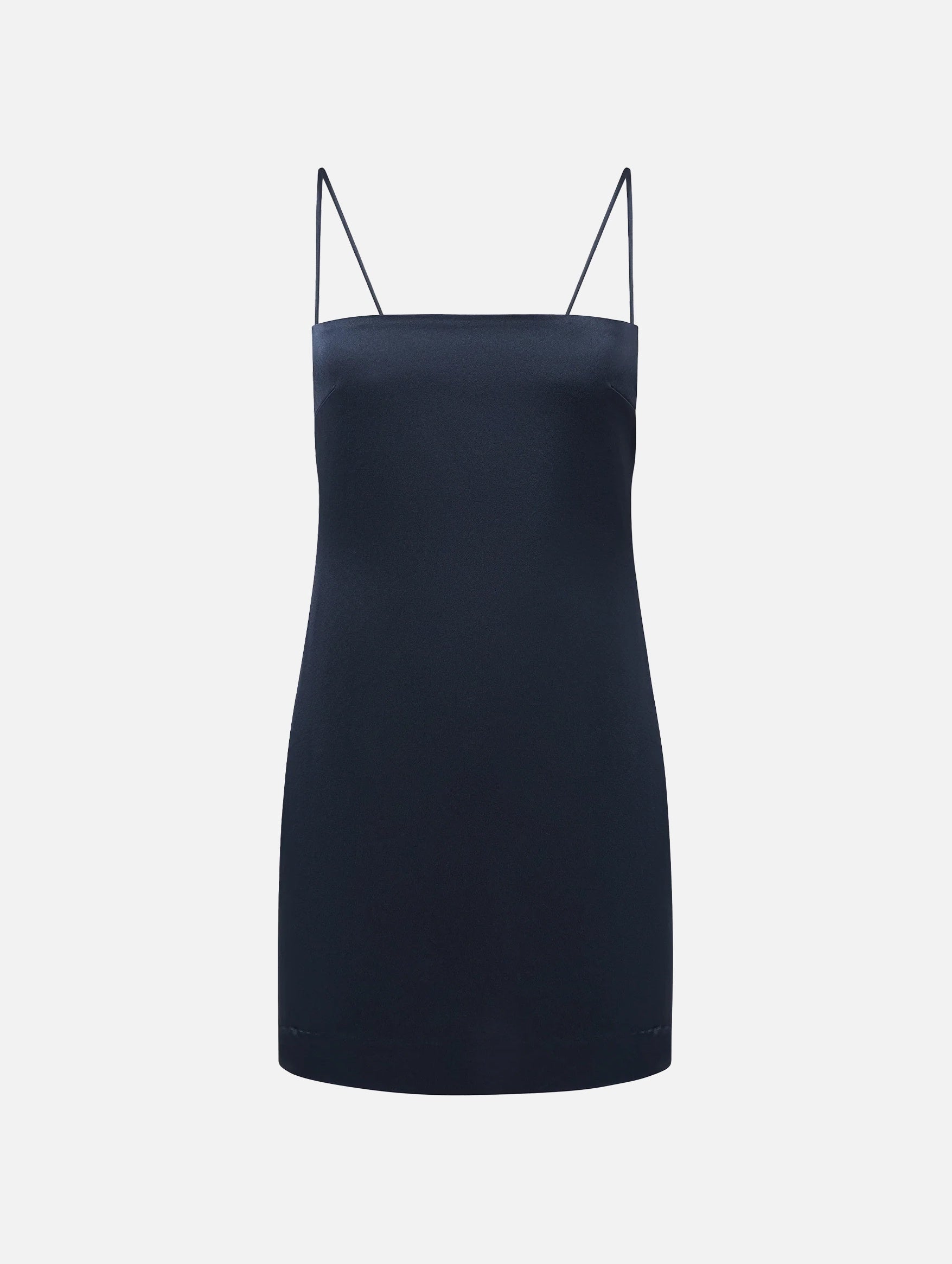 Sleek, minimal, and quietly striking, the Blaze Slip in Slate from Paris Georgia is cut from ballerina satin to glide effortlessly over the body. Featuring a clean square neckline and slender rouleau straps, this mini-length silhouette brings modern elegance with a whisper of romance. With its versatile slate tone, it’s perfect for layering with knitwear by day or stepping out solo for evening, made to feel polished no matter the moment.