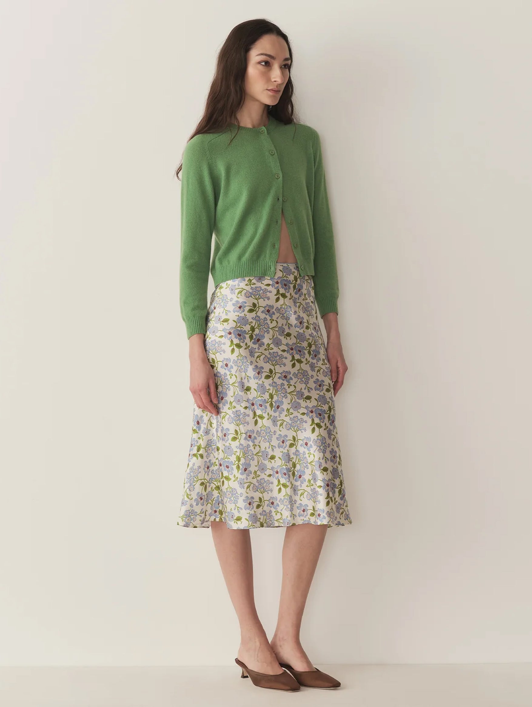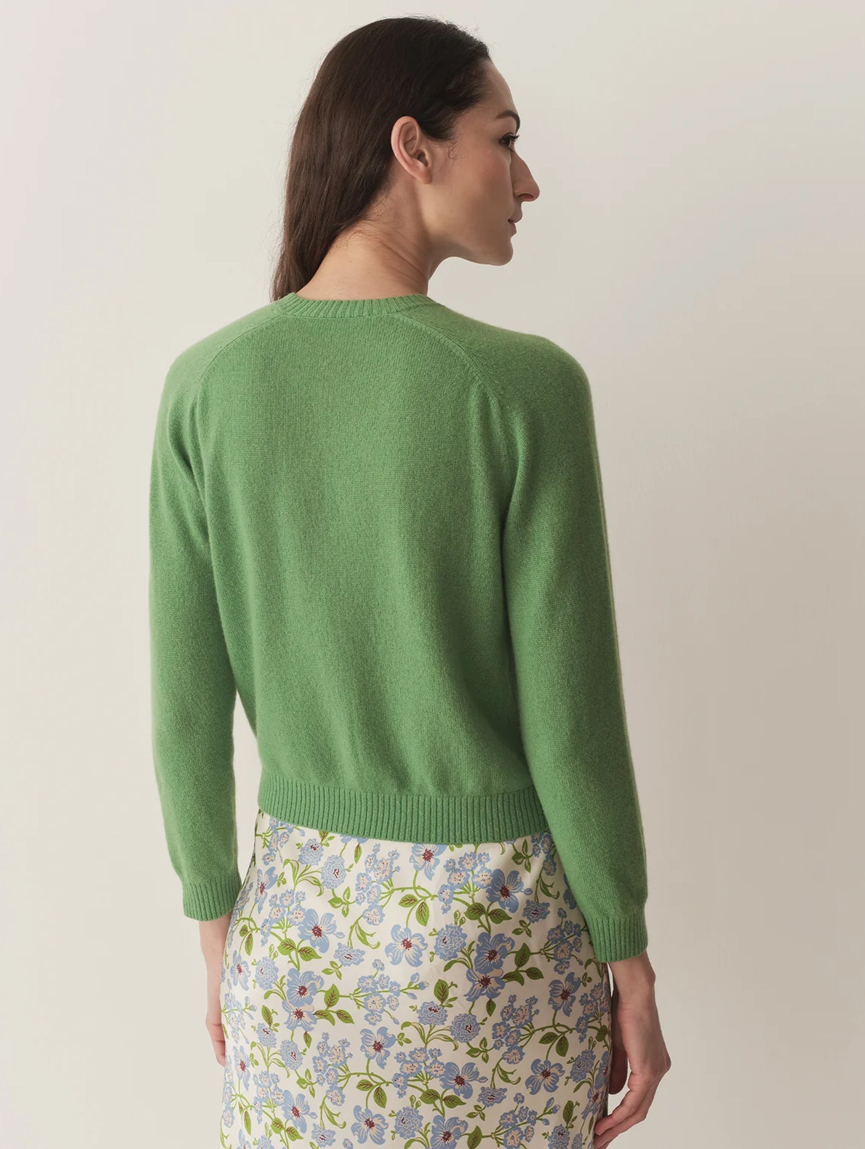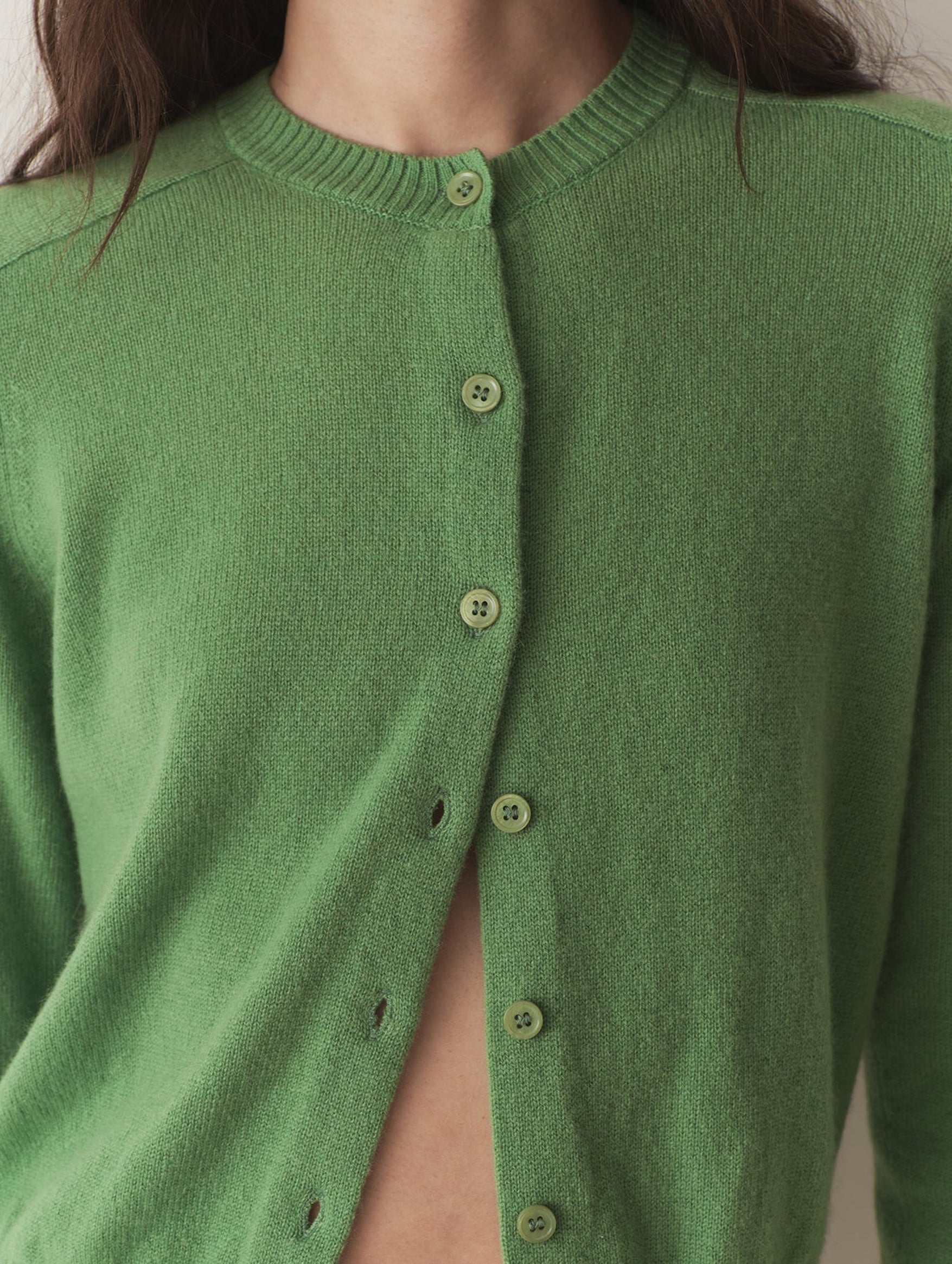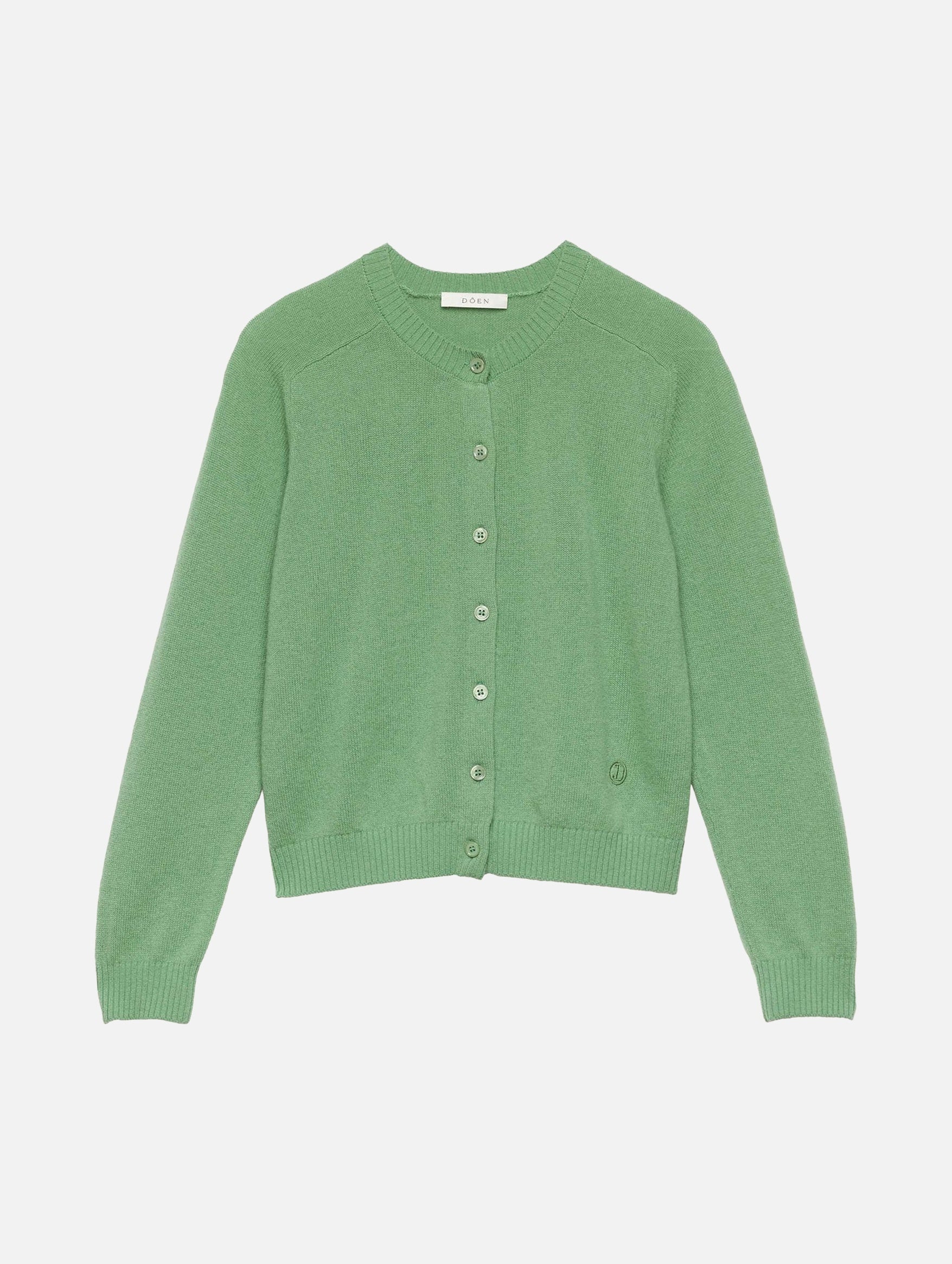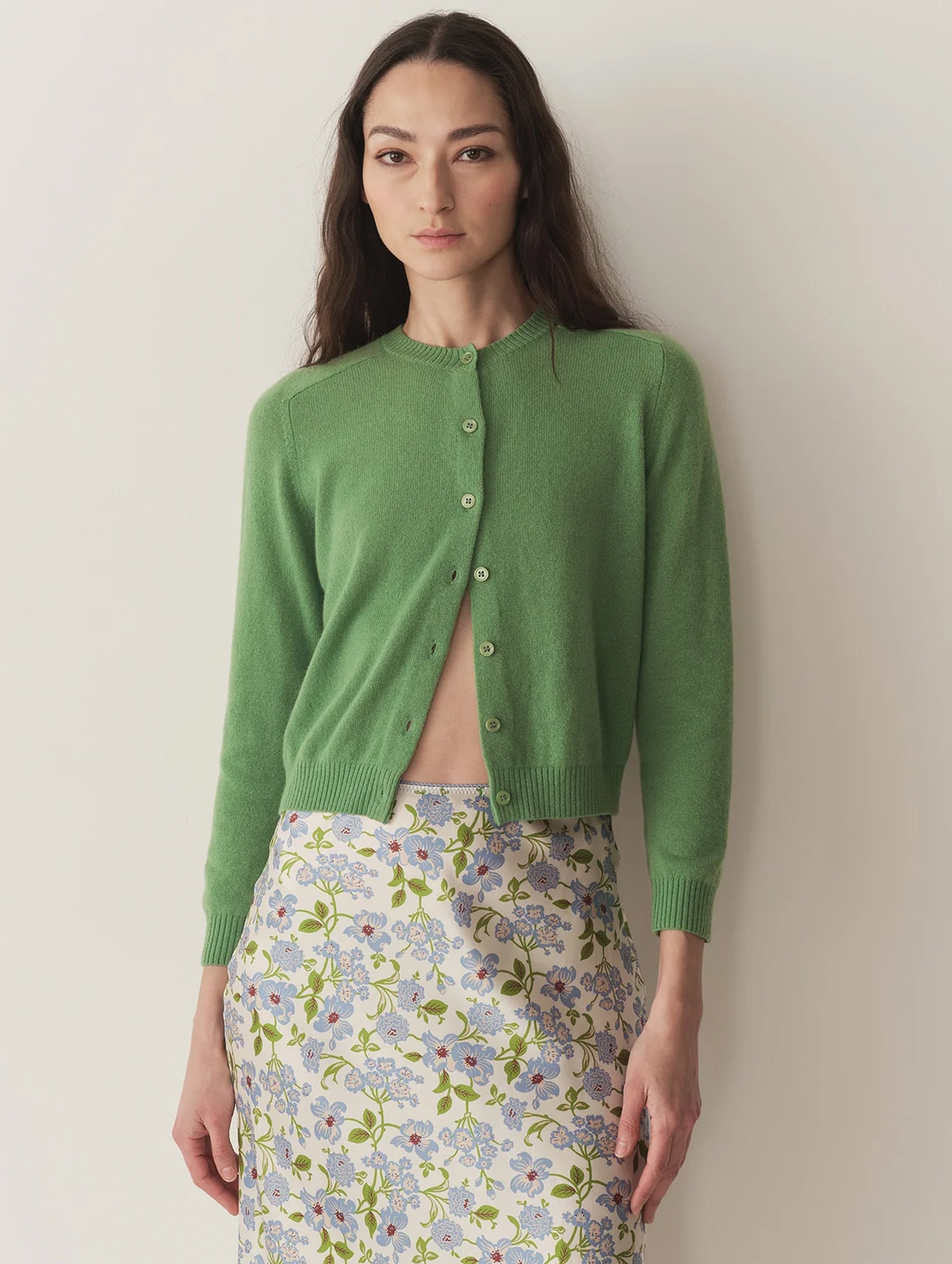 Rendered in the softest cashmere, the Claudine Cardigan from DÔEN is the perfect burst of colour for your Autumnal wardrobe. A classic silhouette, this piece features a crew neck, a fitted body, full-length sleeves, and ribbing at the neckline, sleeve cuffs, and hem. A line of mother-of-pearl buttons extends down the front. Layer throughout every season for a luxe pop of green.