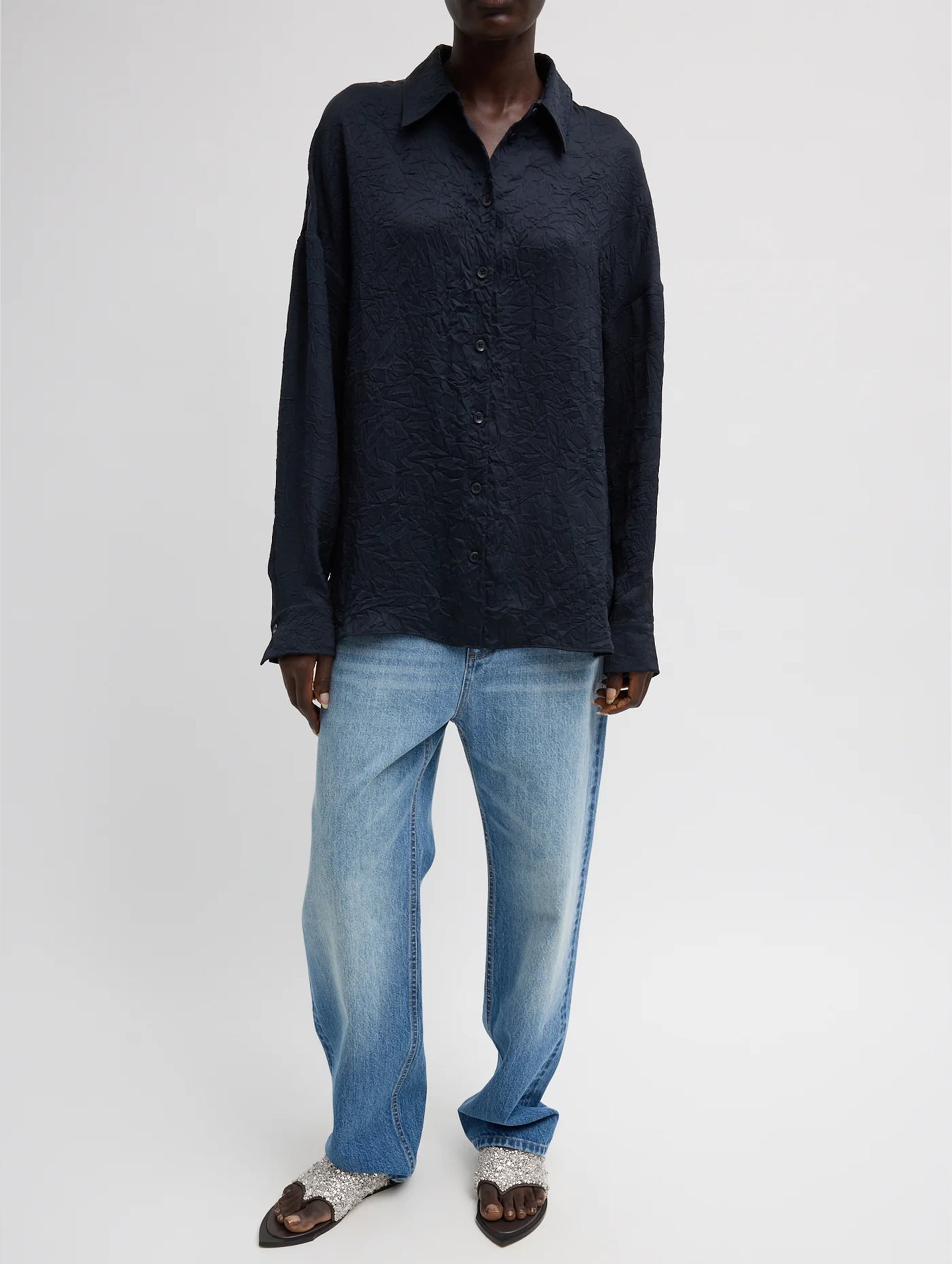 Get notified when Crinkle Shirting Oversized Shirt in Midnight Navy - XXS / Blue comes back in stock.