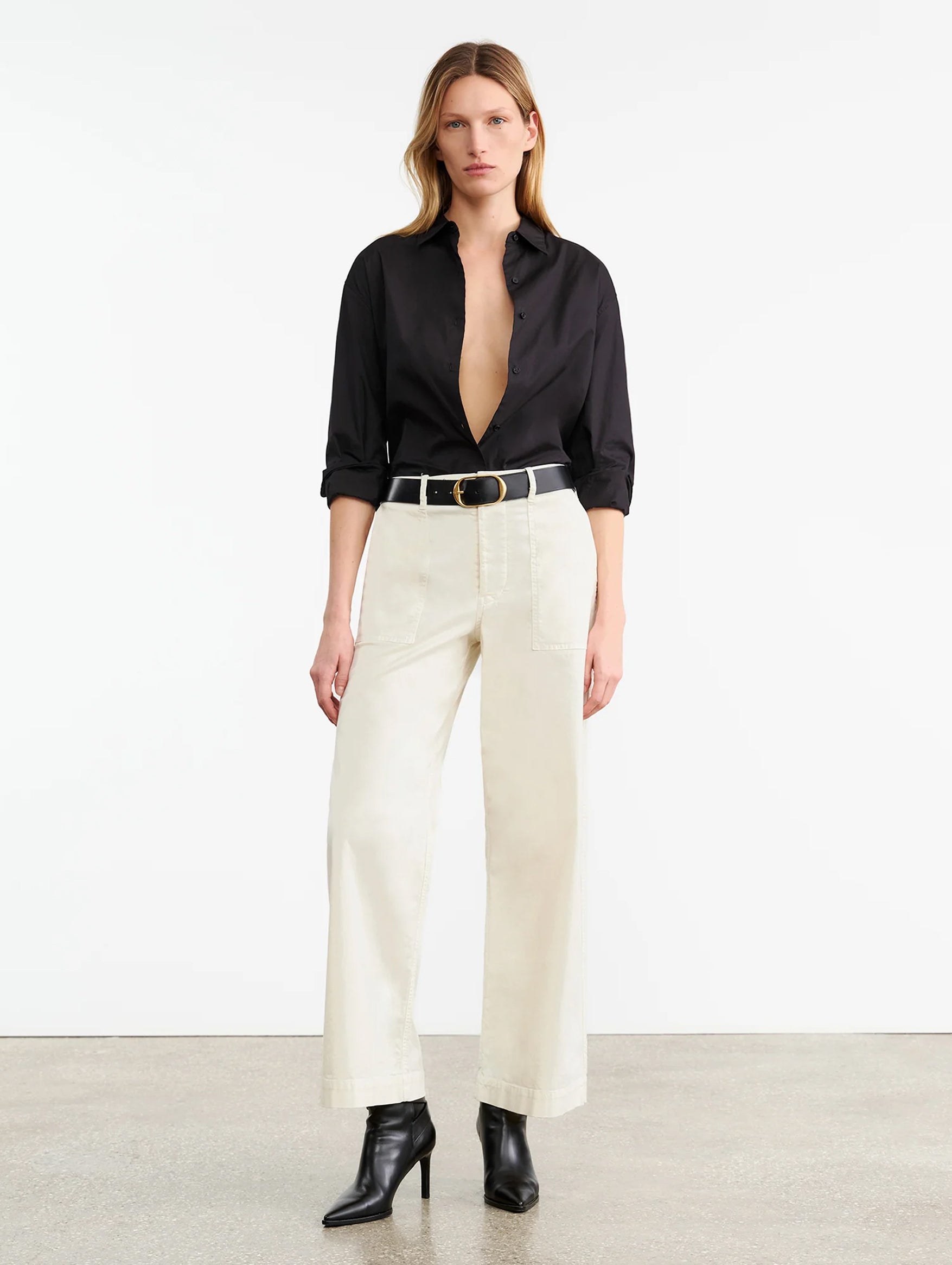 Blended with lightweight cotton in a versatile white hue, Nili Lotan's Leon Boy Pant's are a silhouette you will reach for day after day. Tailored with a mid-rise that falls to a cropped, wide leg, they have belt loops, side patch pockets, back flap pockets and a zip-fly with button. Ideal in the summer and elegant paired with cashmere in the winter.