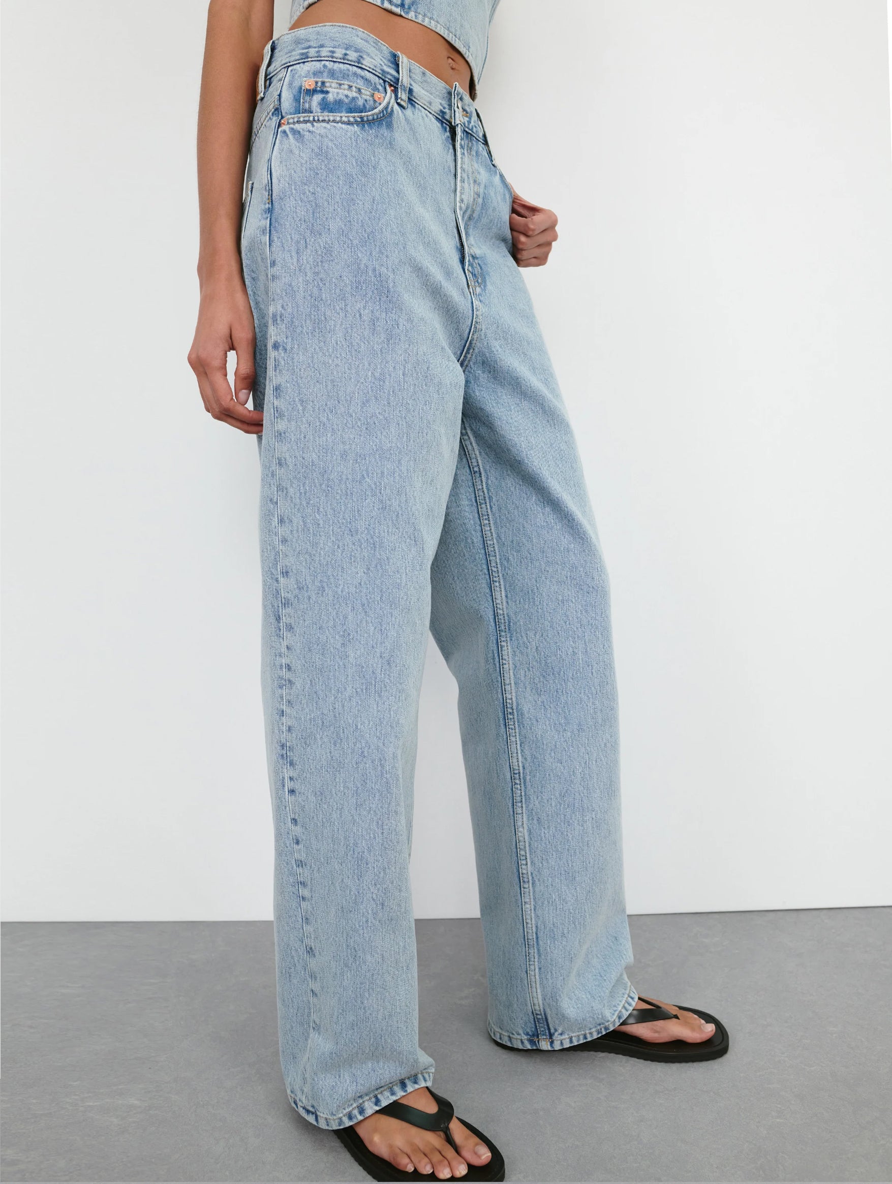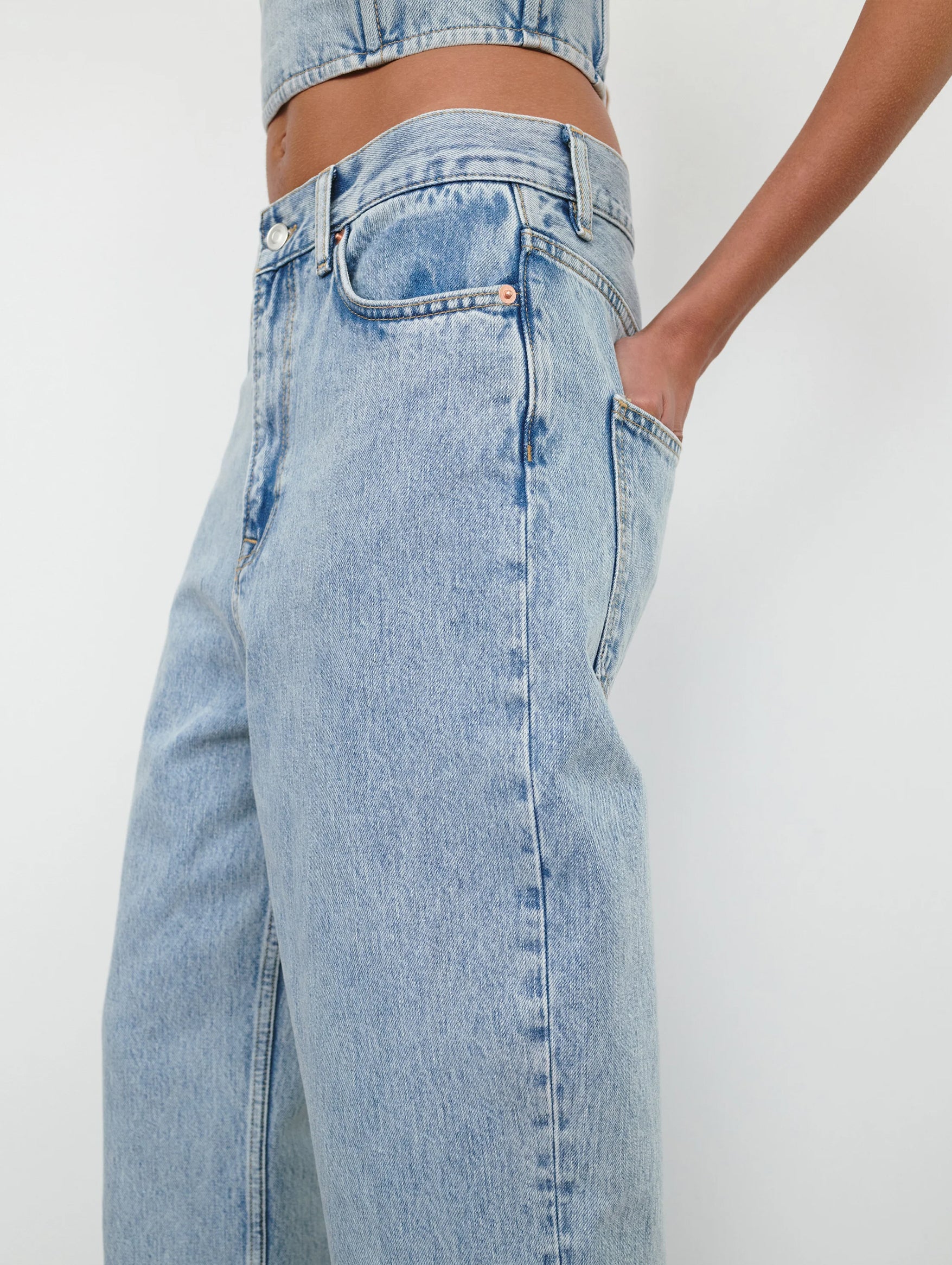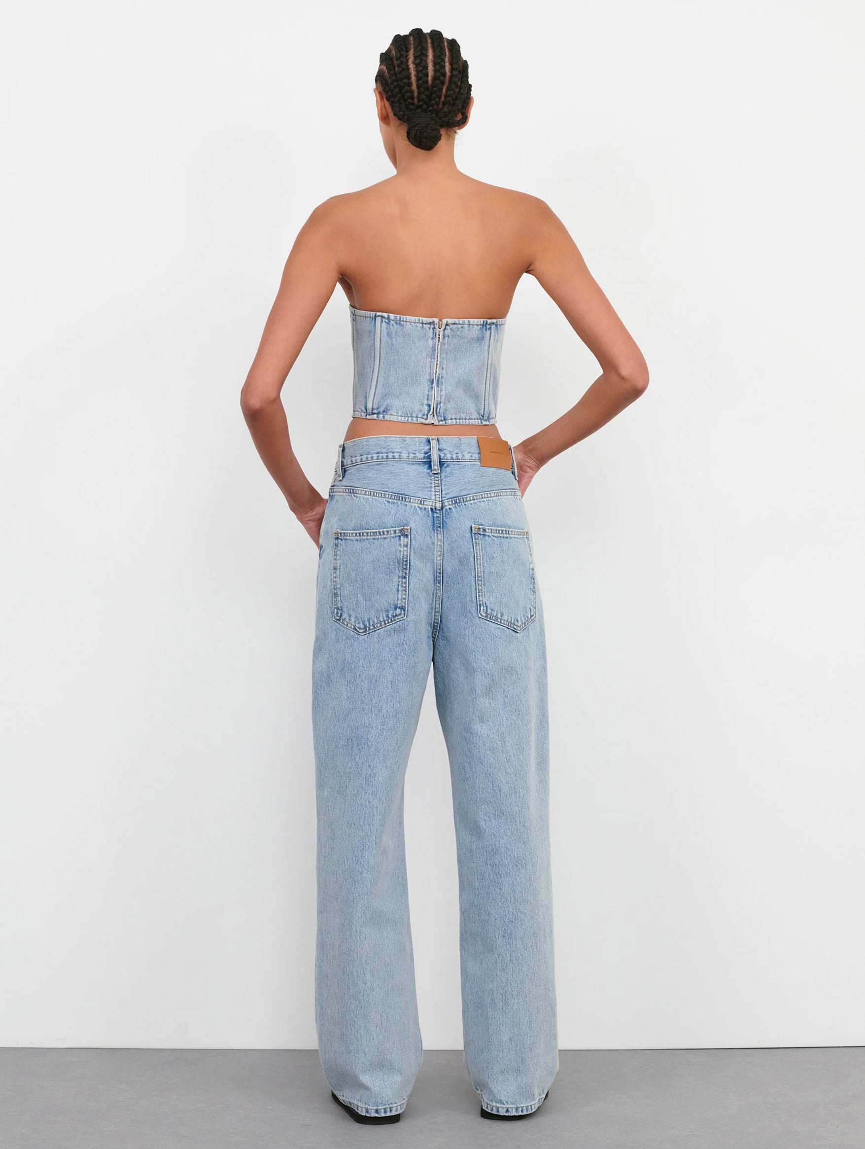 A relaxed pair of denim, WARDROBE.NYC's Low Rise Jean is designed to sit on the hip with a low rise fit. Cut in a 3x1 right hand twill, 14-ounce denim, featuring classic details including a button fly closure with metal shanks, scoop front pockets with metal rivets, and contrast top stitching. Pair simply with your classic t-shirt offerings or elevate with a blazer and loafers.