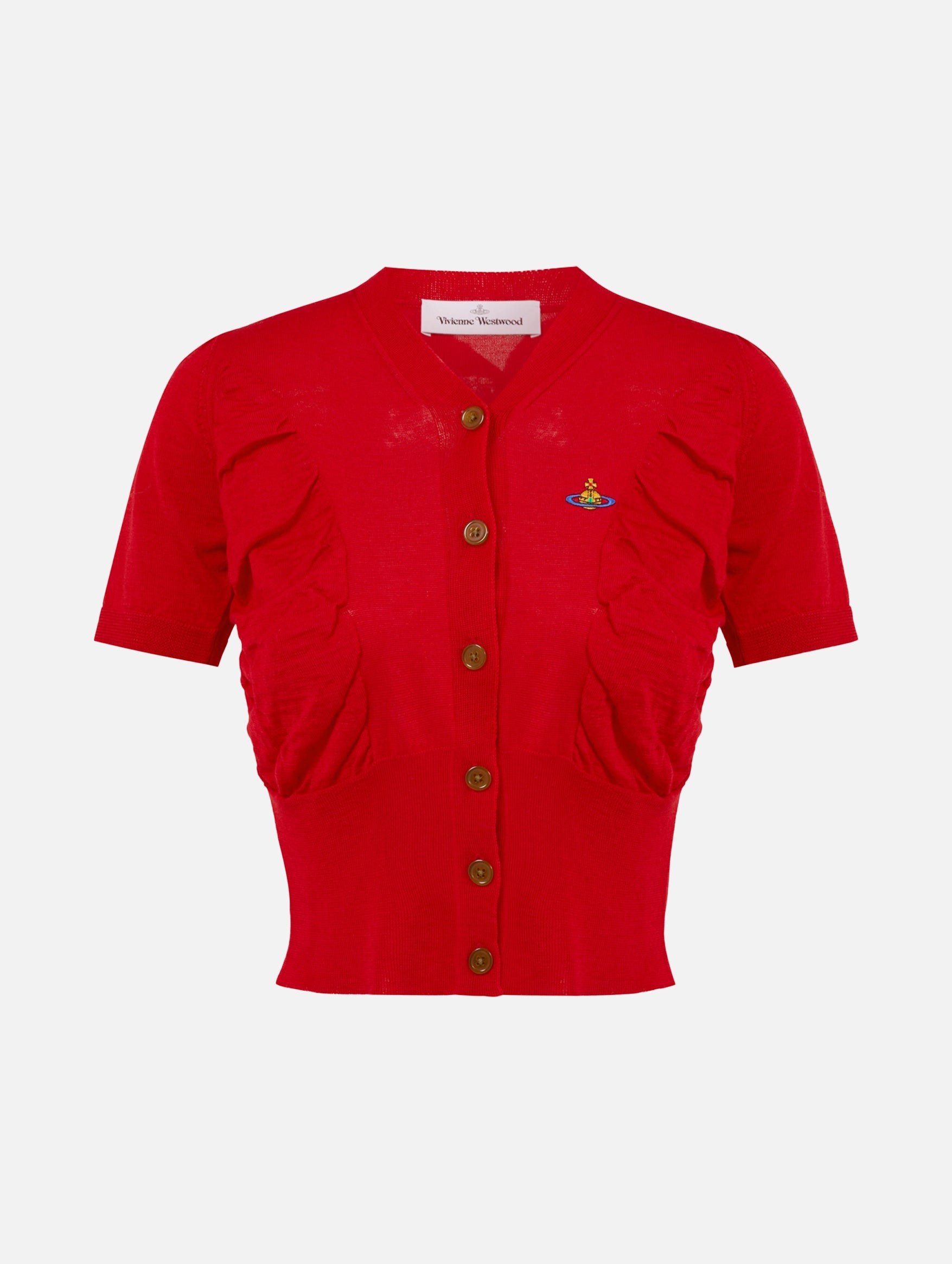 The Vivienne Westwood Pamela Cardigan in Red brings refined texture and subtle structure to a classic layering piece. Softly ruched across the silhouette for gentle dimension, it offers a flattering, modern fit with quiet sophistication. Comfortable and versatile, it feels effortless yet elegantly considered.