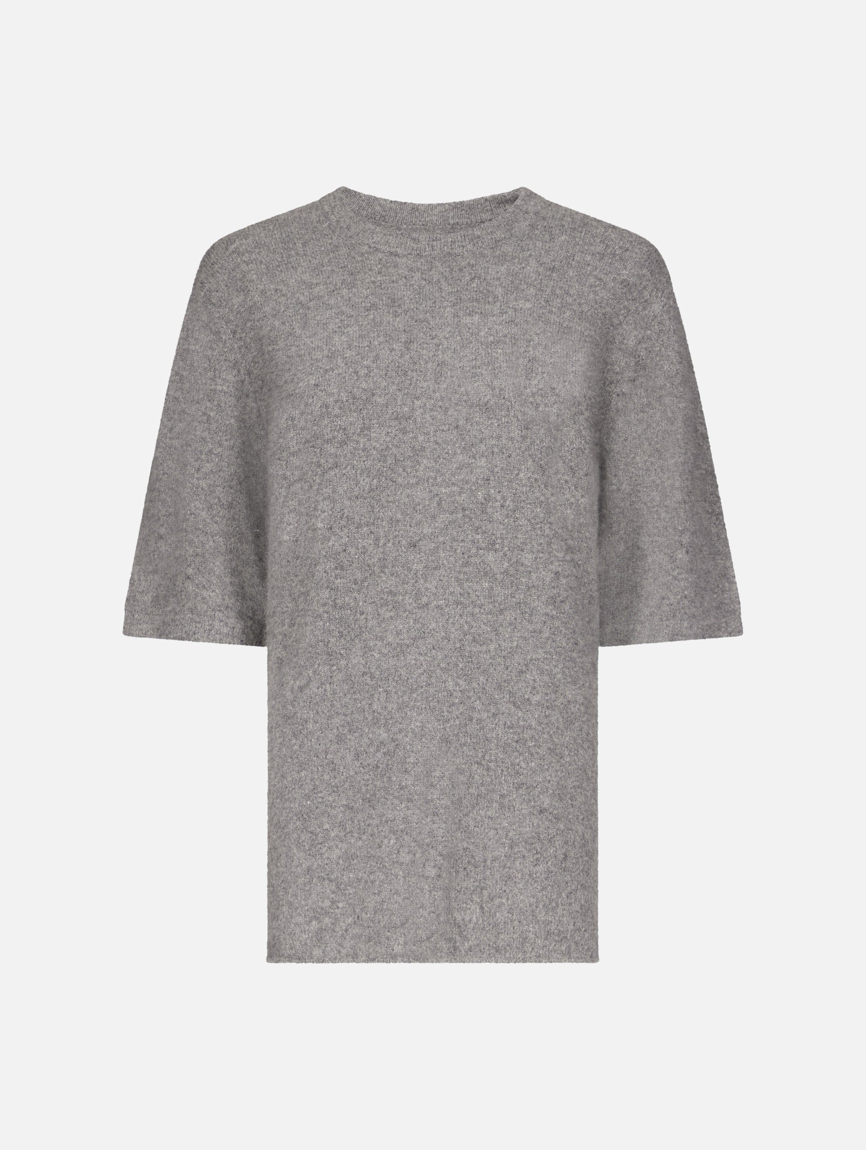 Elevate your essentials with the Raven sweater in Anthracite. Crafted from a luxurious blend of mercerized wool and yak hair, this piece offers an ultra-soft touch and a subtle sheen. Its straight fit, crew neckline, and short sleeves create a relaxed yet refined silhouette, making it a versatile addition to any wardrobe. Pair it effortlessly with tailored trousers or casual denim for an elevated everyday look.