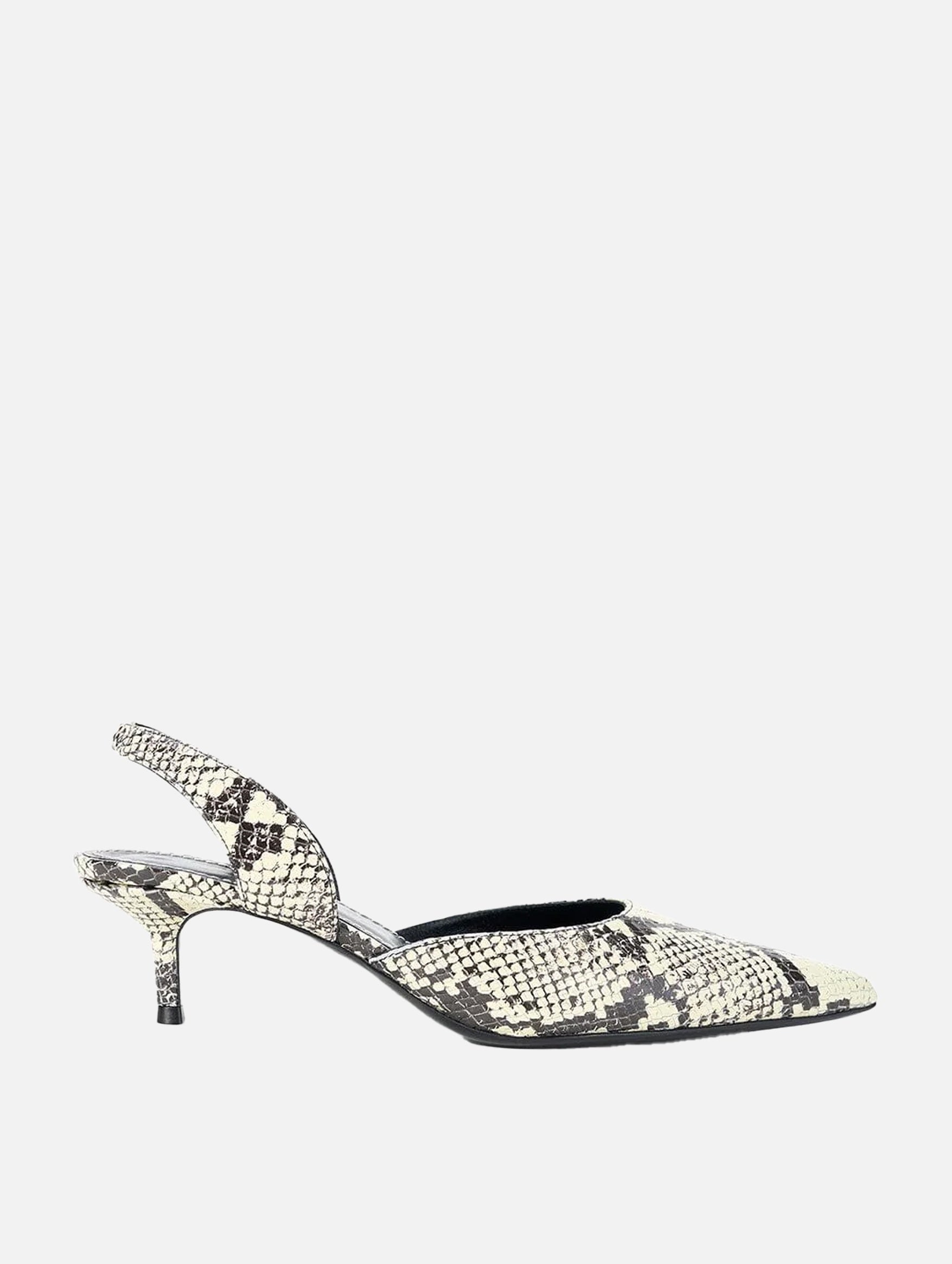 The STAUD Sebastian Slingback in White Snake is a sleek, modern kitten heel that reimagines classic elegance with a contemporary twist. Crafted from embossed white snake-print leather, this pointed-toe slingback features just the right amount of lift without compromising comfort. Its minimalist design and neutral palette make it a versatile addition to any wardrobe, seamlessly transitioning from day to night.