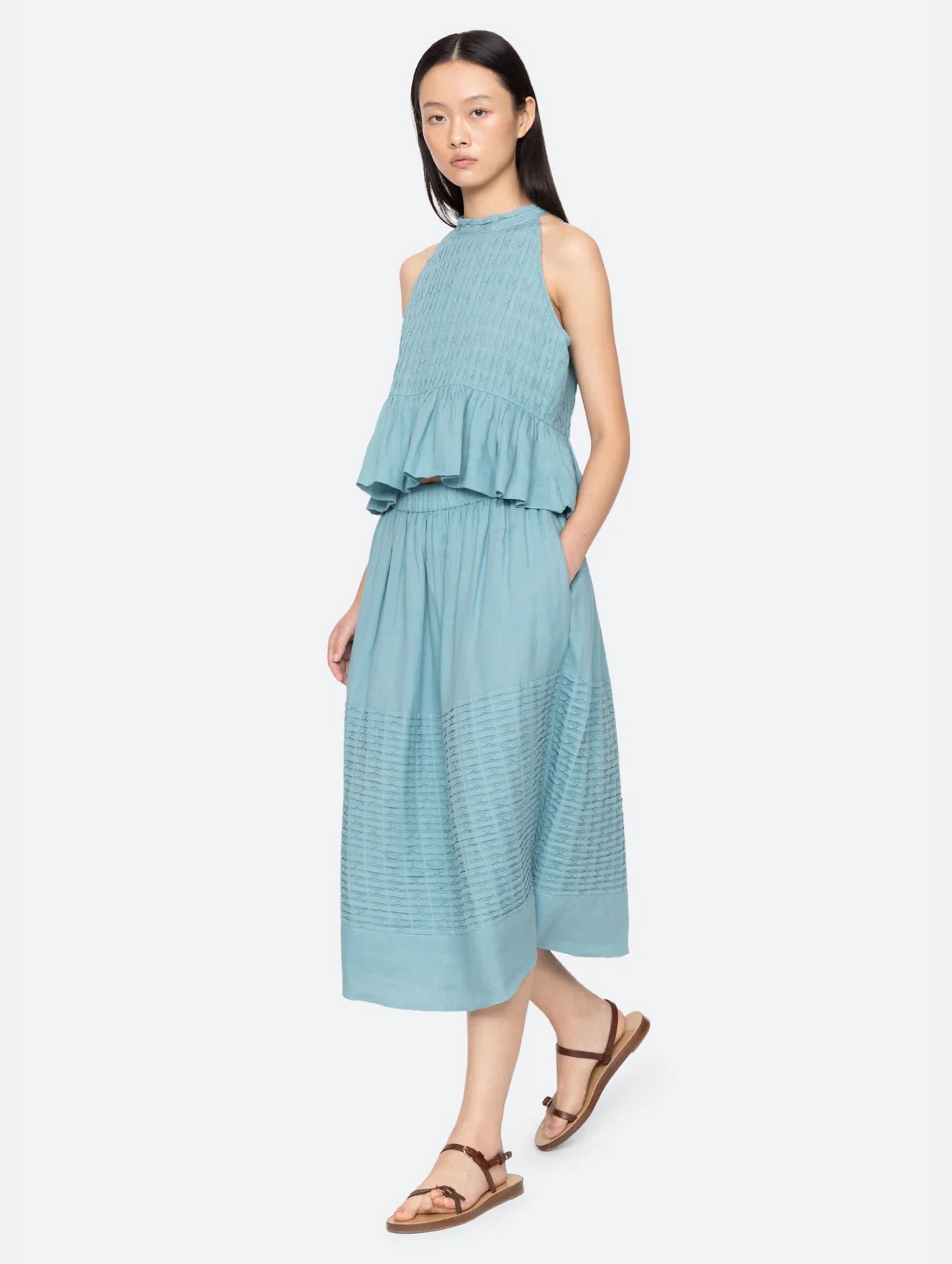 The SEA NY Violet Skirt in Blue is a refined take on effortless dressing with sculptural ease. Cut in a soft blue hue with subtle movement and a flattering silhouette, it drapes with quiet elegance from waist to hem. Designed with thoughtful proportions and timeless simplicity, it brings a polished, modern finish to both relaxed and elevated looks.